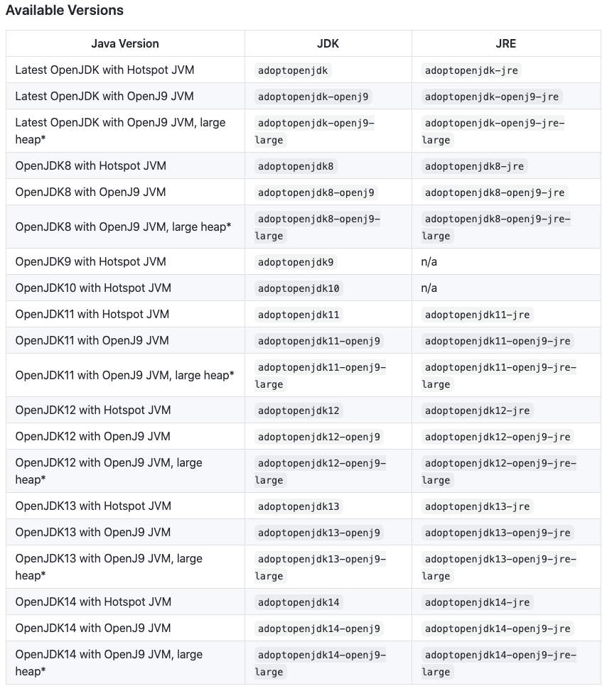 표 내용중 JDK 컬럼에 있는 정보가 버전정보입니다.