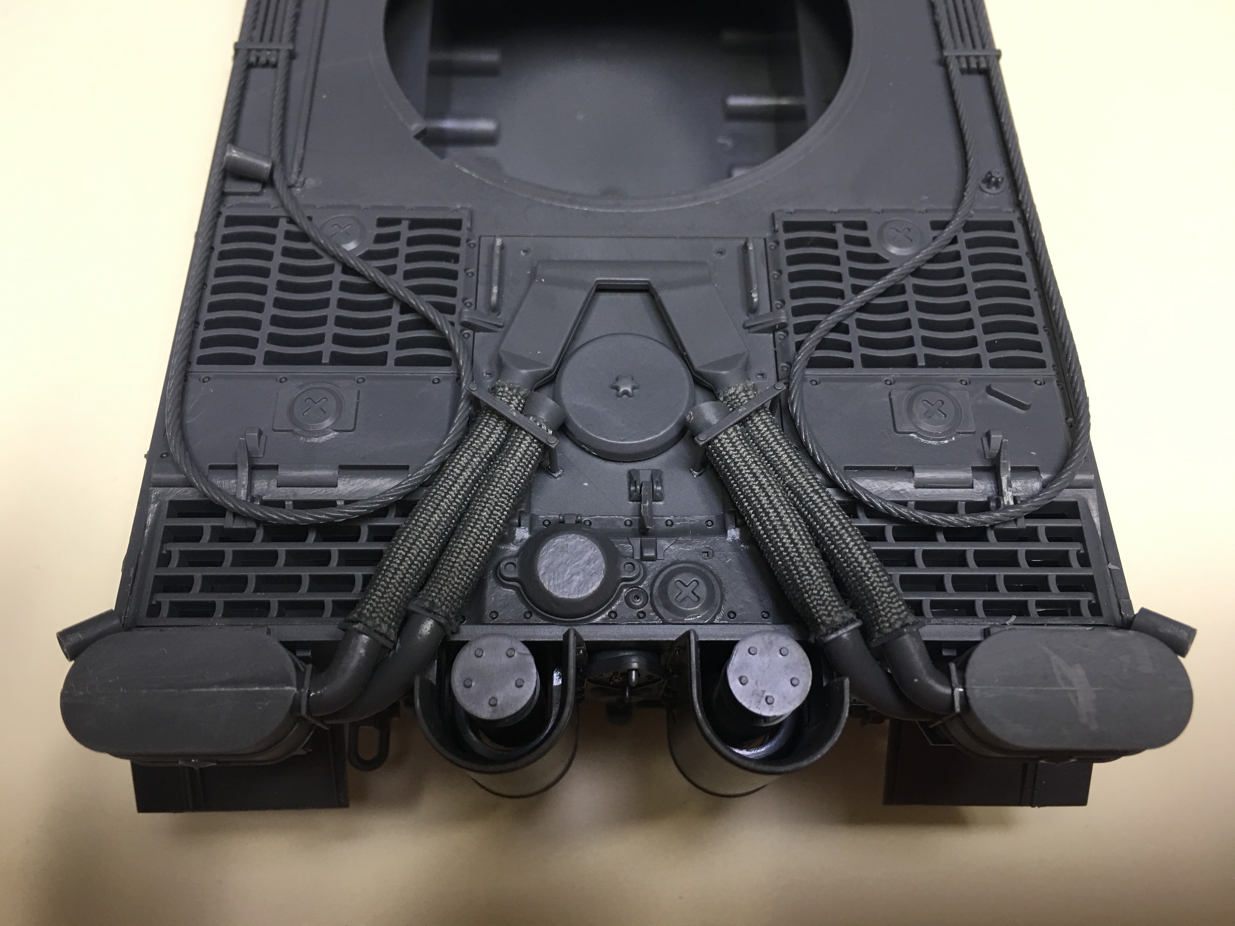 티이거 전차의 특징중 하나인 에어클리너 부분과 듀얼 머플러(?)의 모습입니다.
