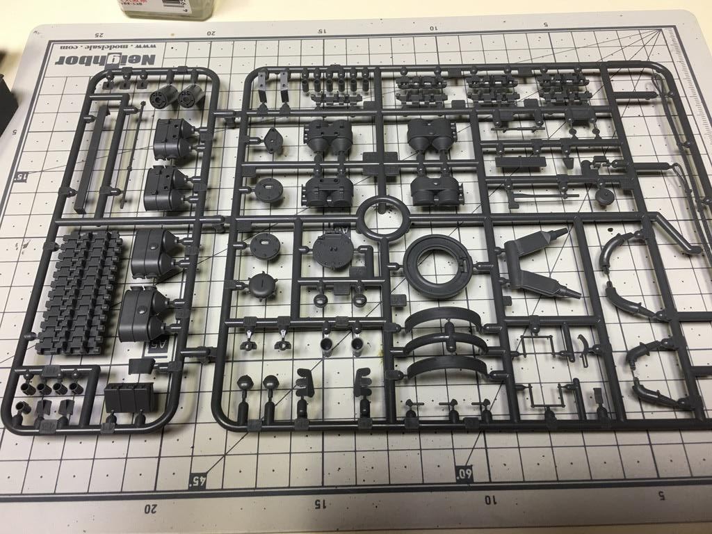이전에 조립했던 88m 대공포 킷과는 그 부품의 수준이 많이 납니다.