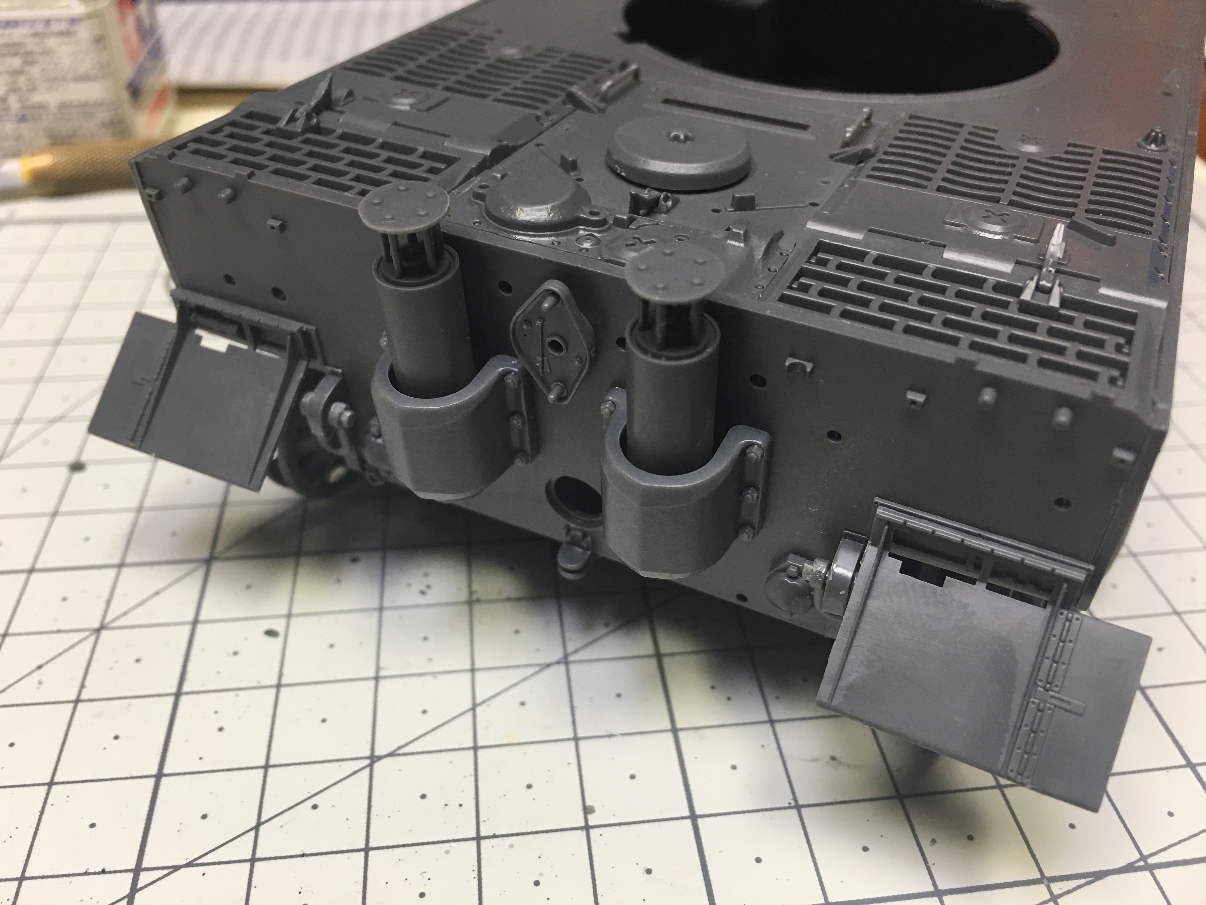 티이거 전차의 특징중 하나인 에어클리너 부분과 듀얼 머플러(?)의 모습입니다.
