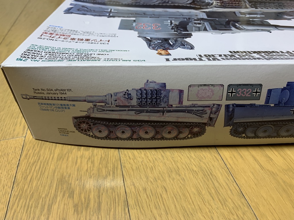 킷 박스에는 동계 도장색이 벗겨진 틈으로 사막 색인 Desert Yellow 색이 보이고 있는 것으로 보아, 이 전차는 아프리카 전선에 투입된 전차임을 보여줍니다.