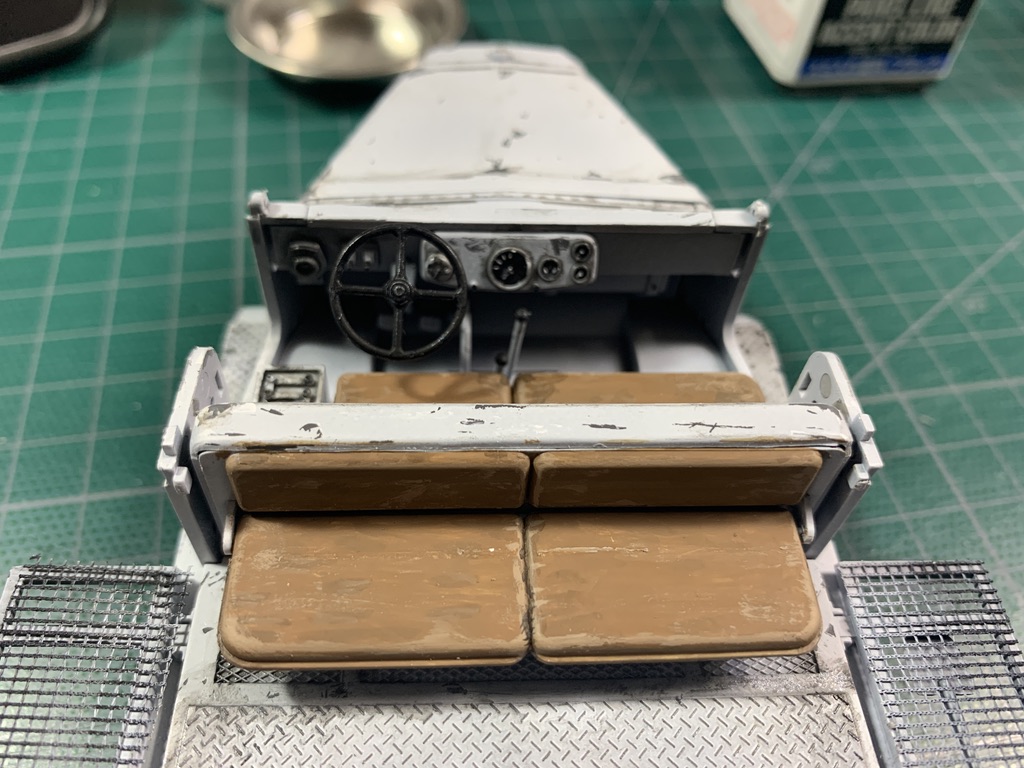 흰색 페인트가 군데군데 벗겨저 차량의 원래색인 그레이색이 드러나 보이도록 1차 웨더링을 같이 시도합니다.
