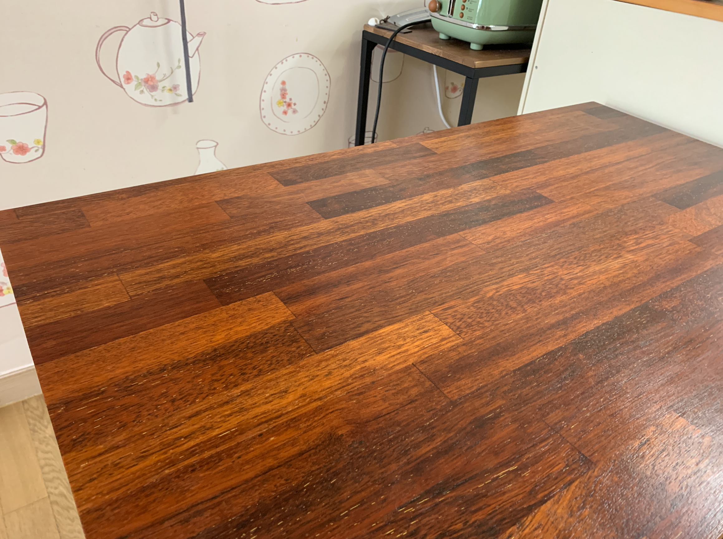 이 상태에서는 뜨거운 냄비나 음식물들은 목재에 그대로 스며들것 같습니다.
