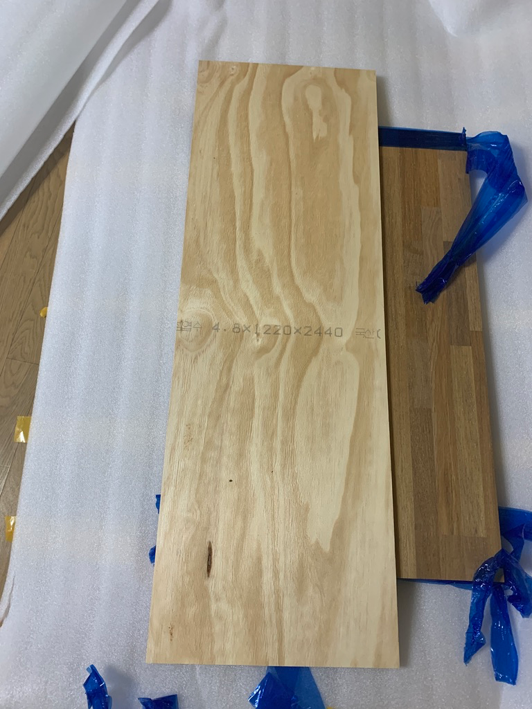 주문한 목재가 도착한 모습입니다. 다른 용도로 필요해서 합판도 같이 주문했습니다.