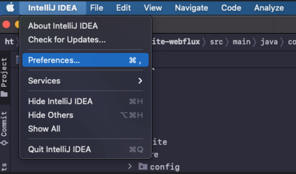 - 프로젝트의 설정화면으로 들어갑니다. ( 단축기: Command + , )