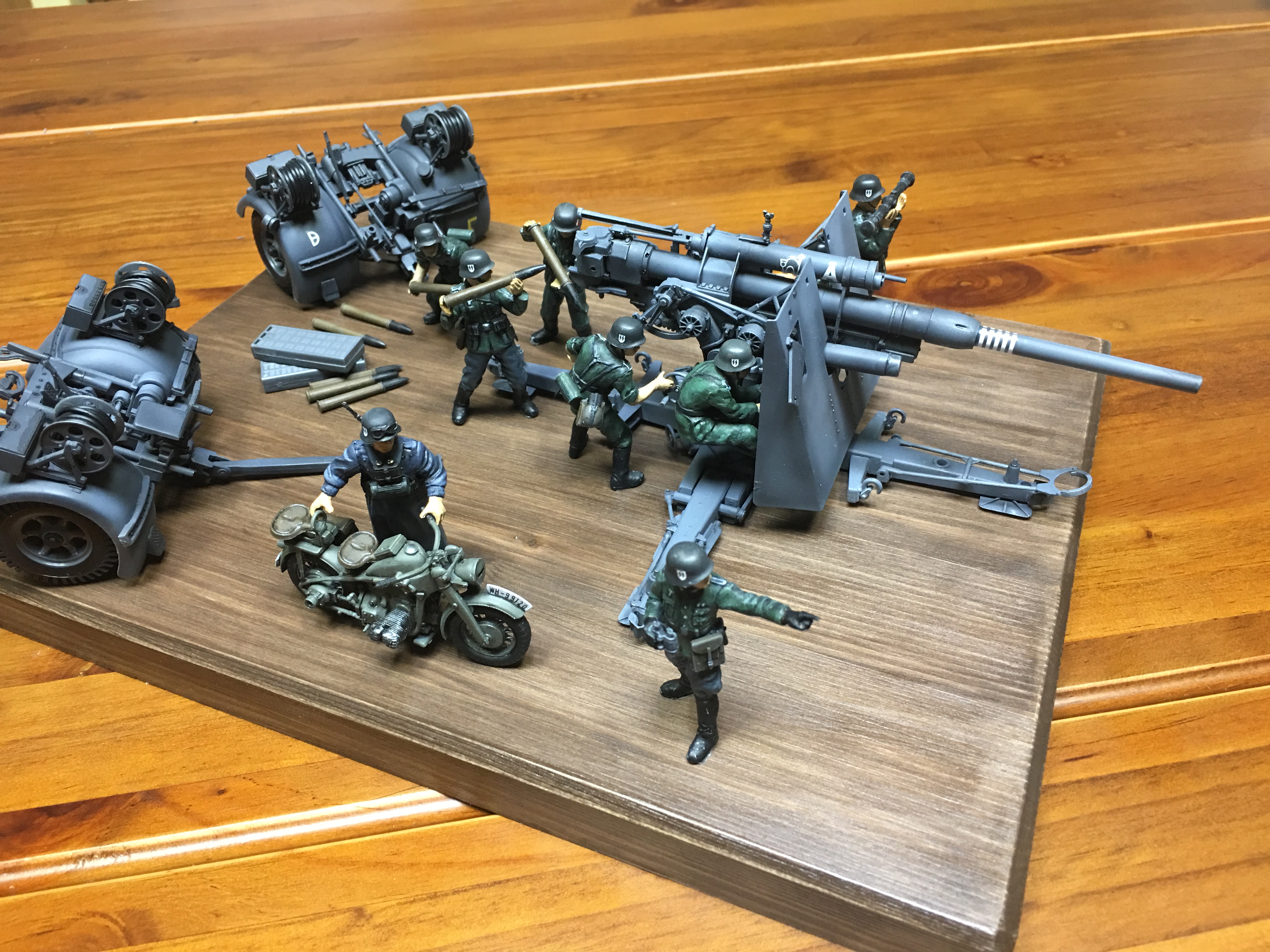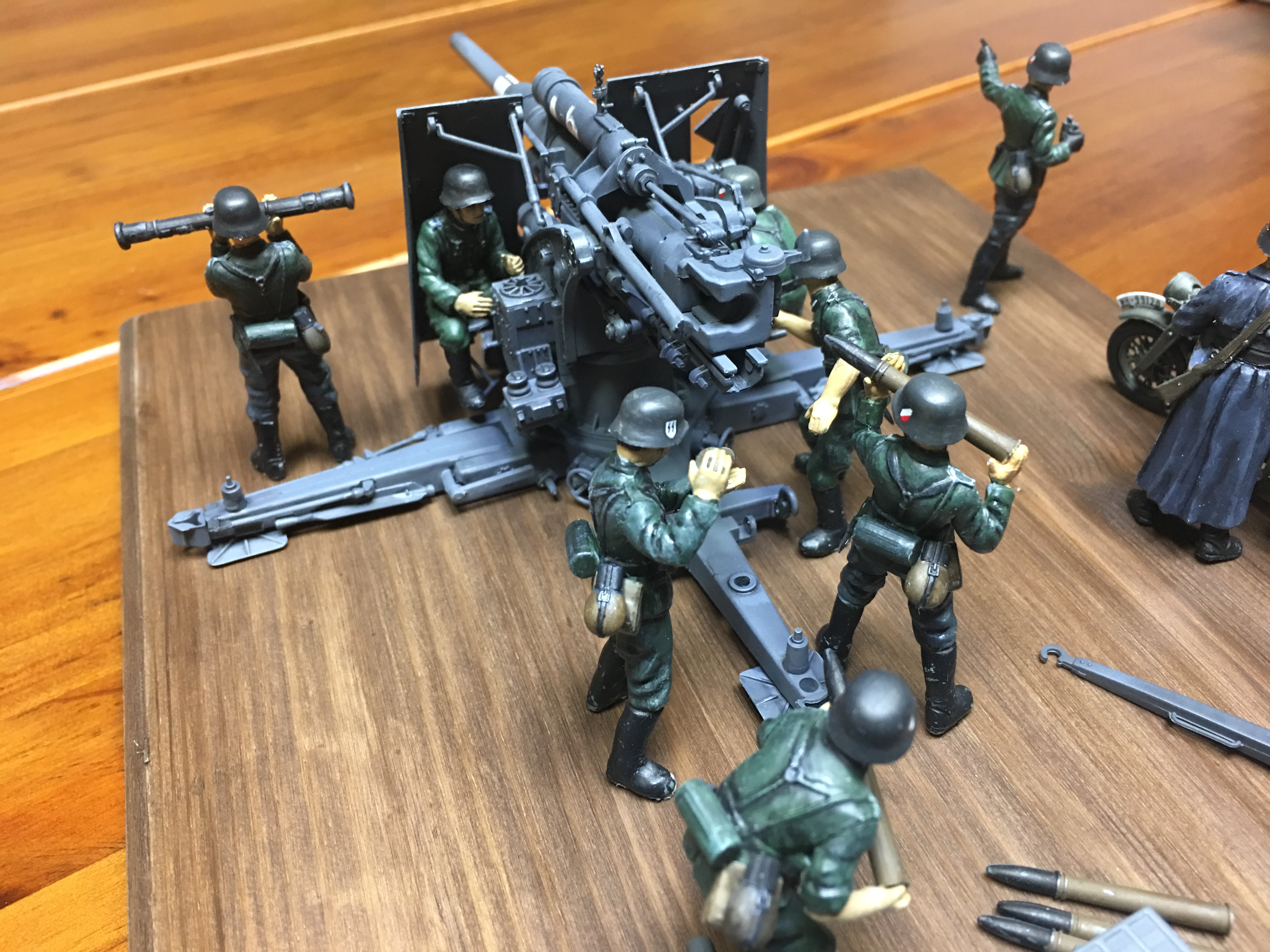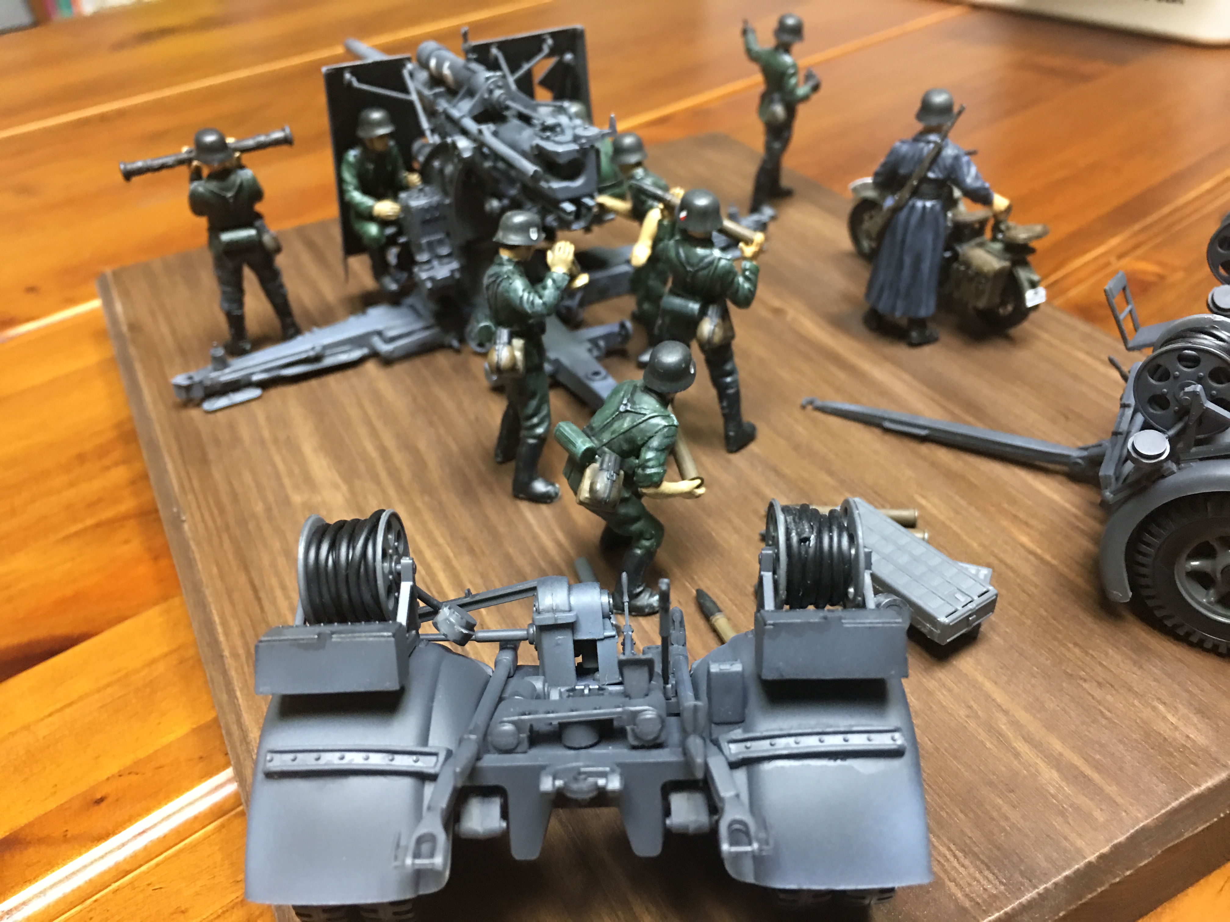 킷에 포함된 견인 트레일러와 포병 및 오토바이 운전수까지 모두 도색까지 완료된 상태입니다.