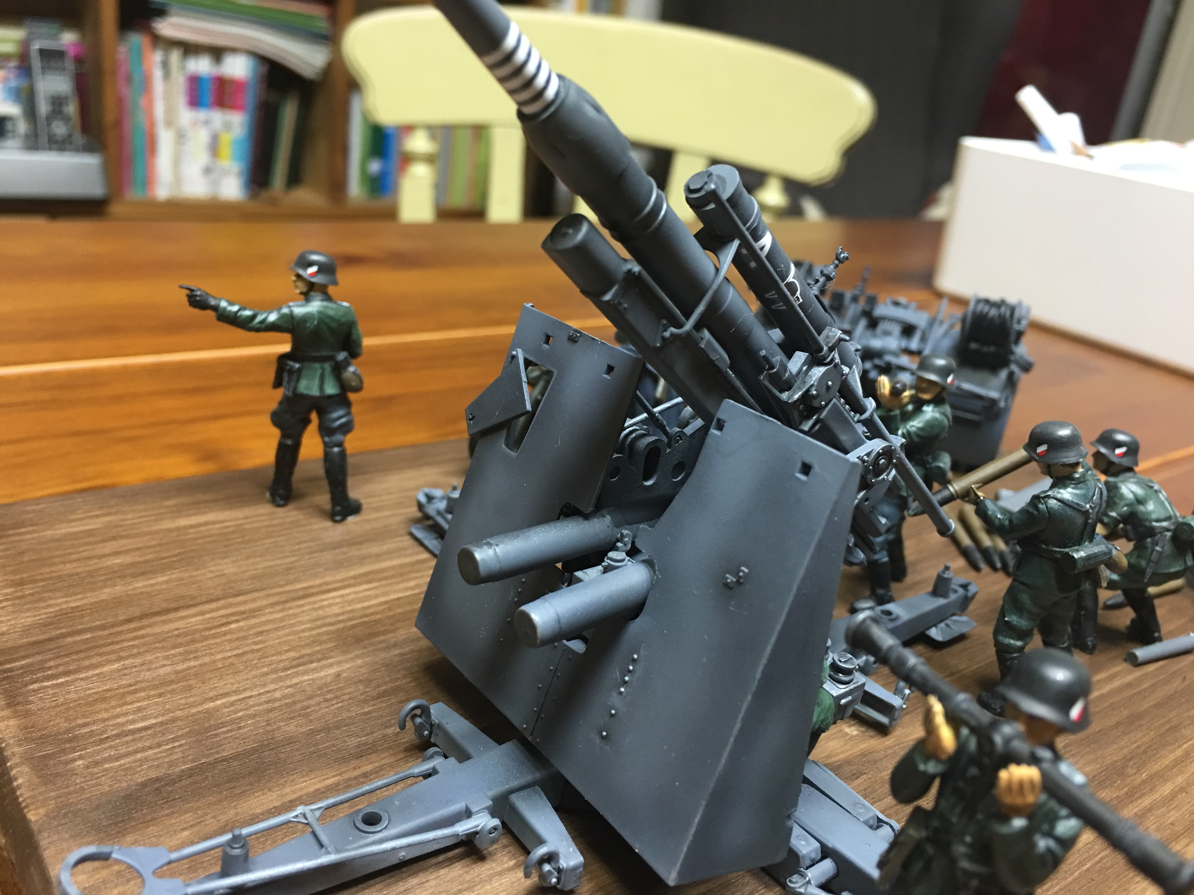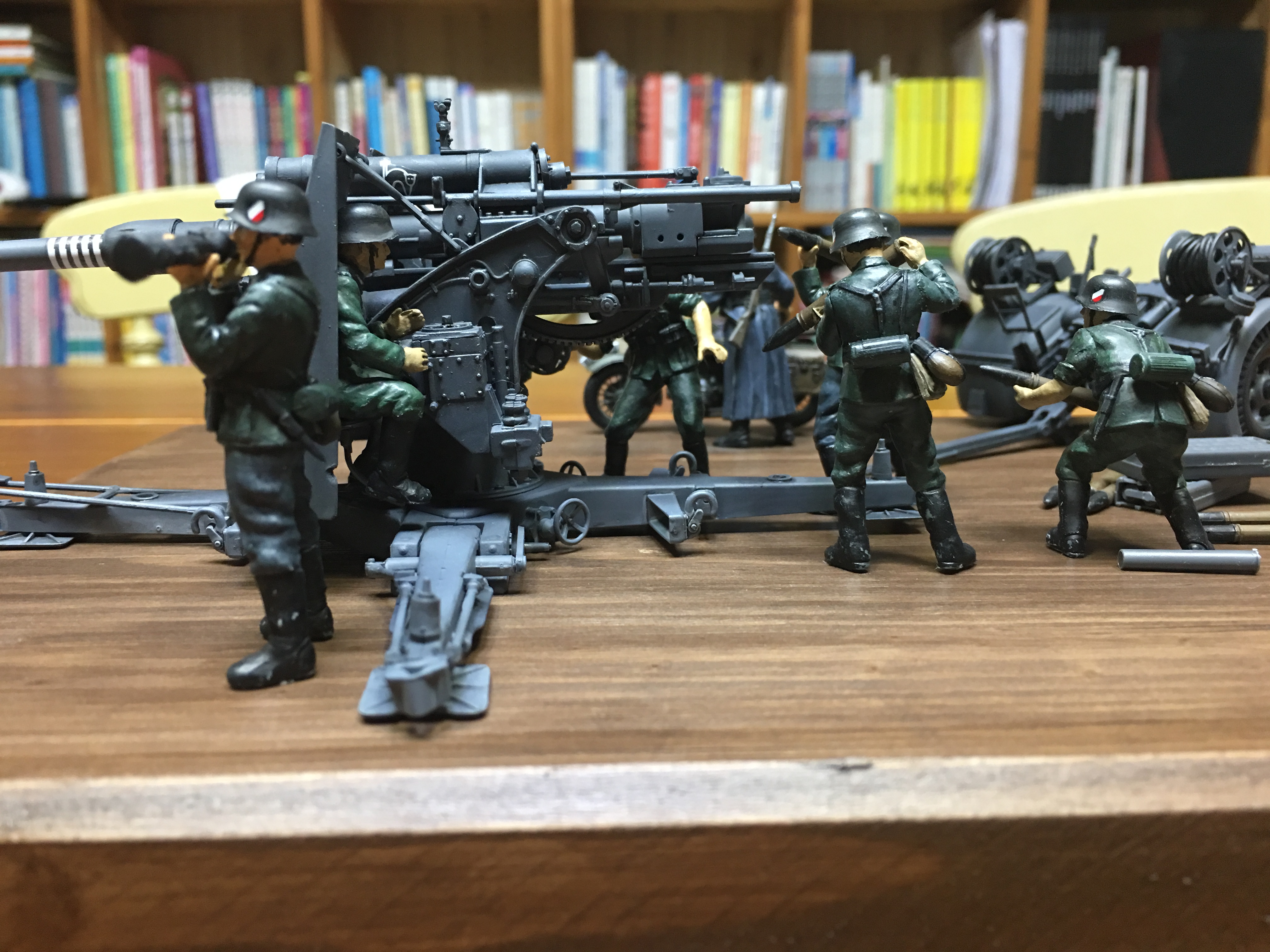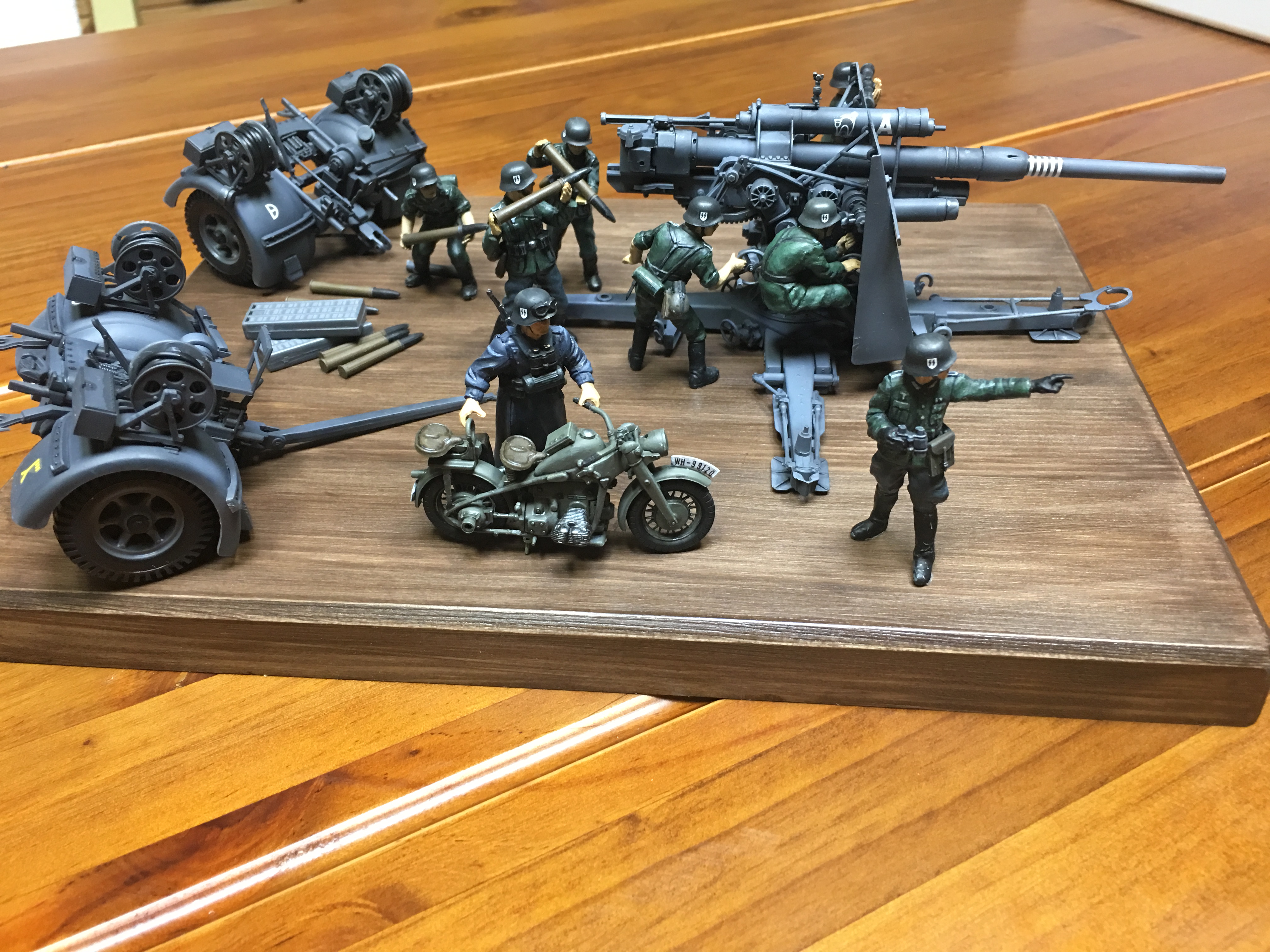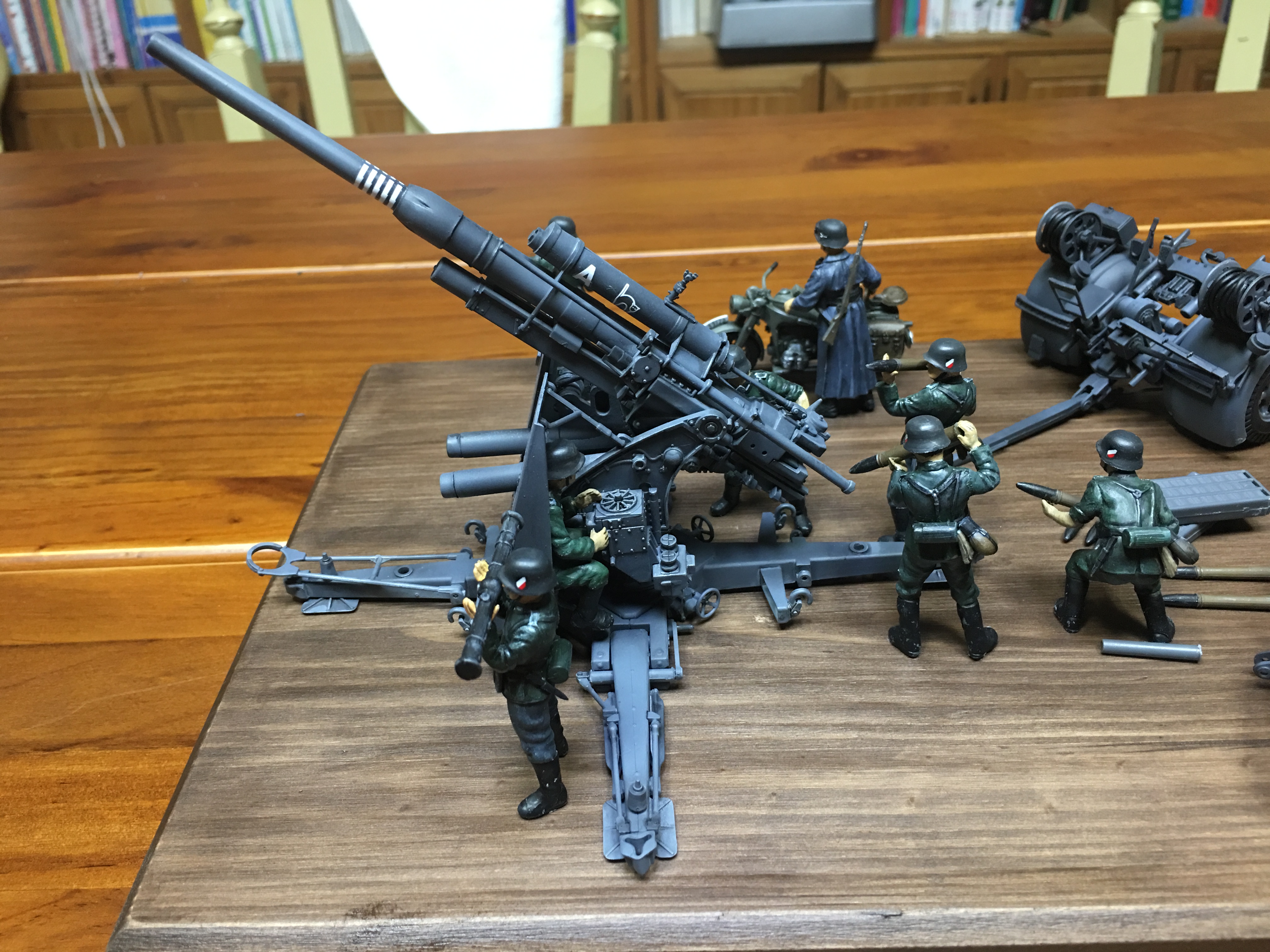 킷에 포함된 견인 트레일러와 포병 및 오토바이 운전수까지 모두 도색까지 완료된 상태입니다.