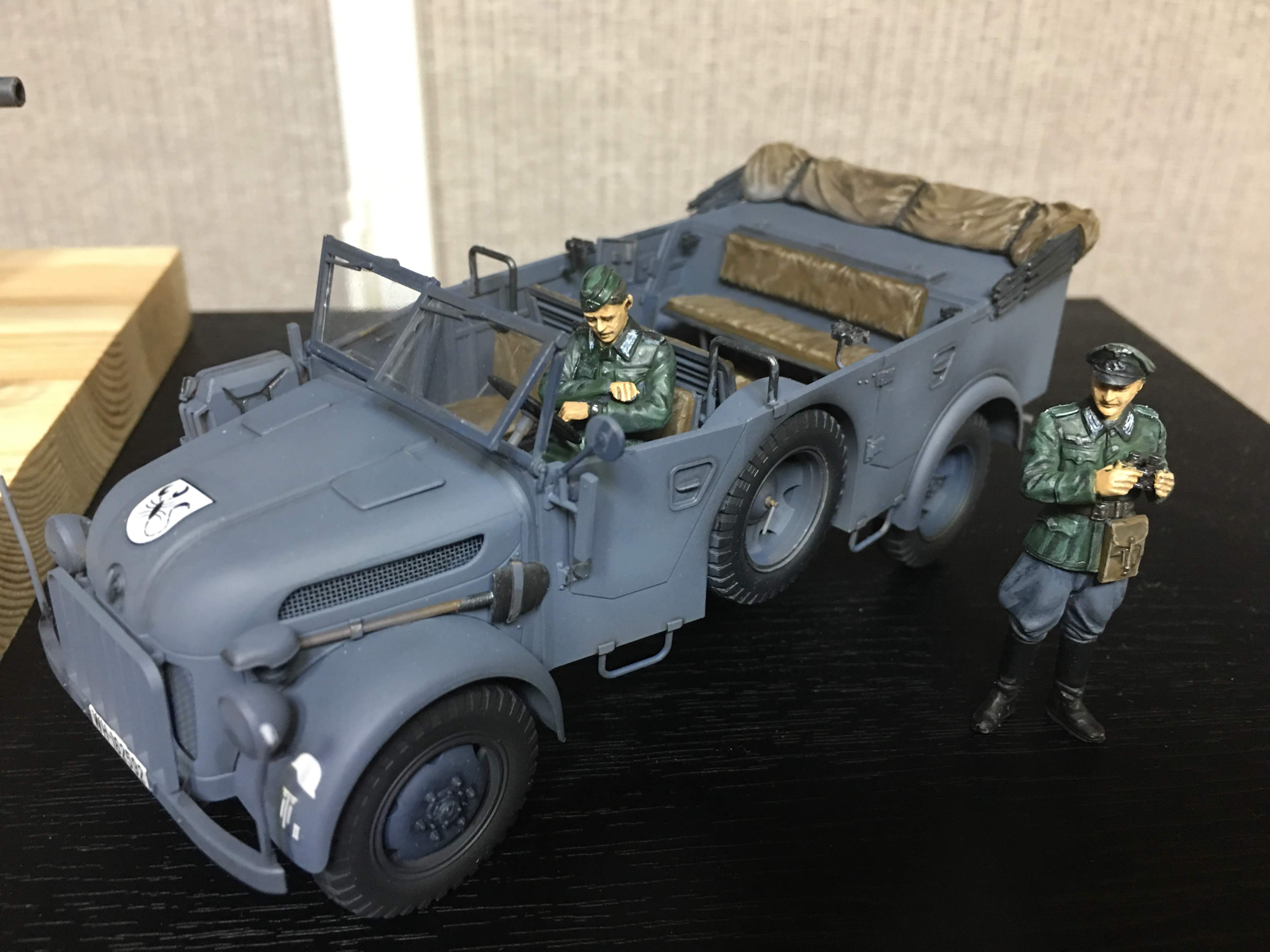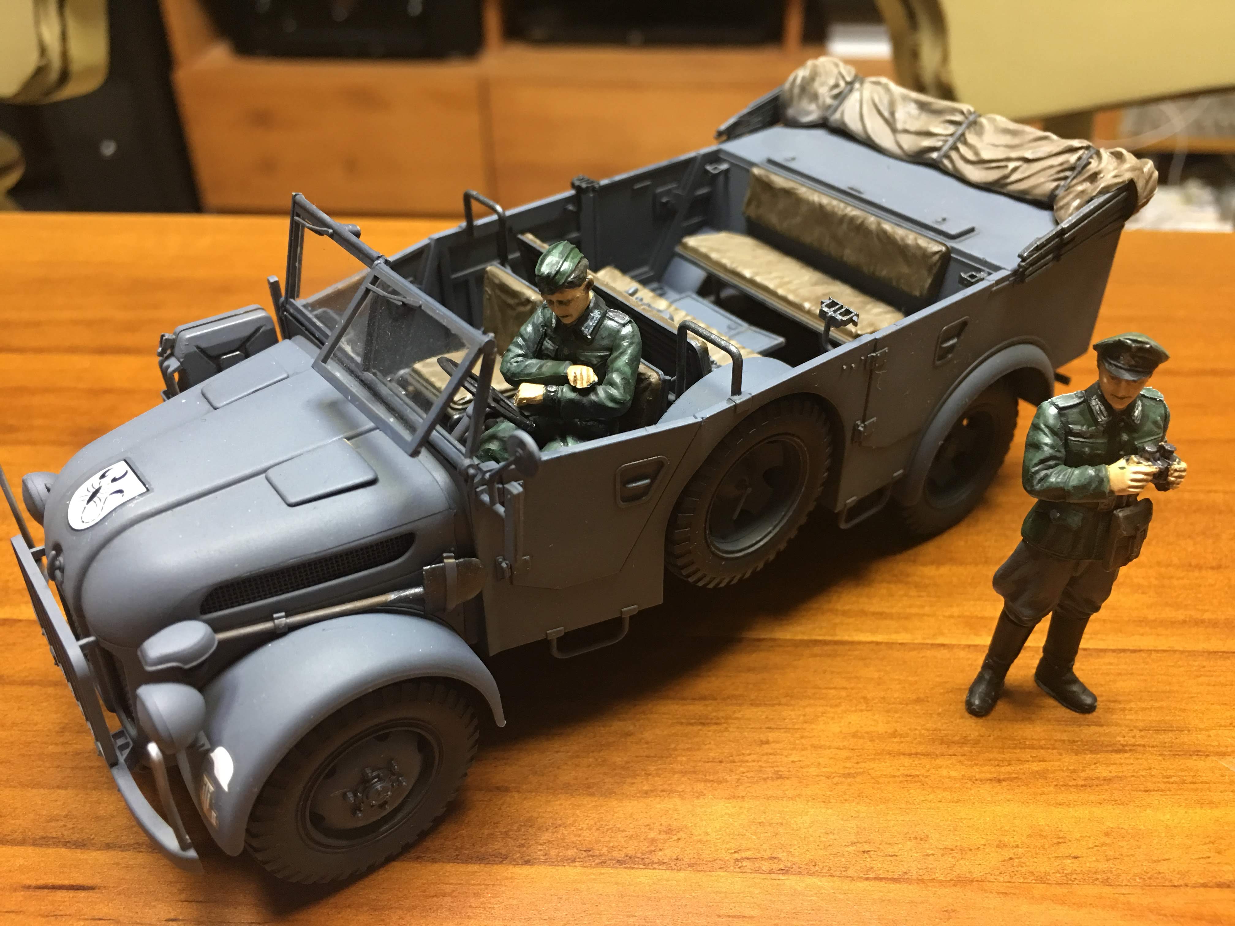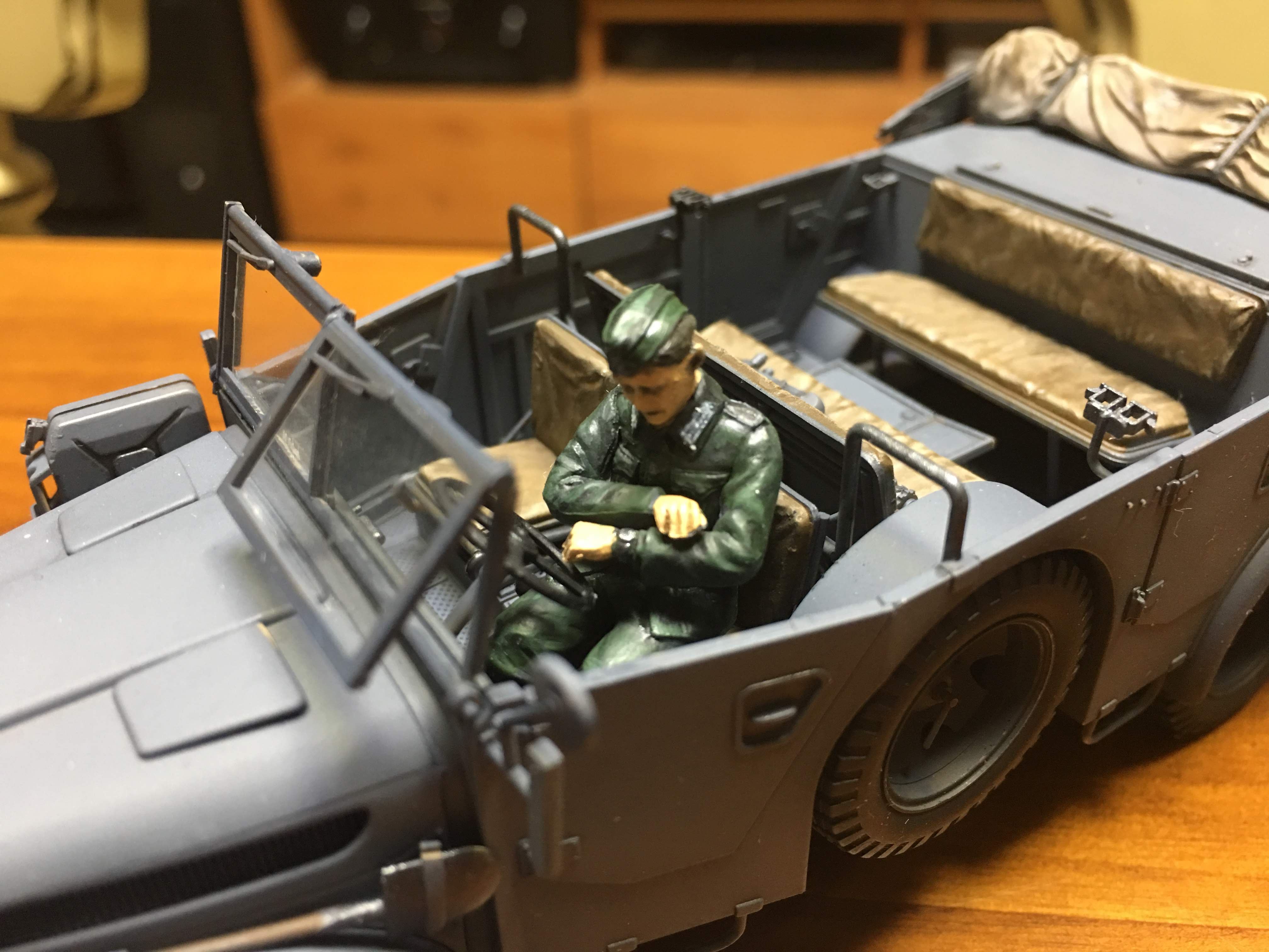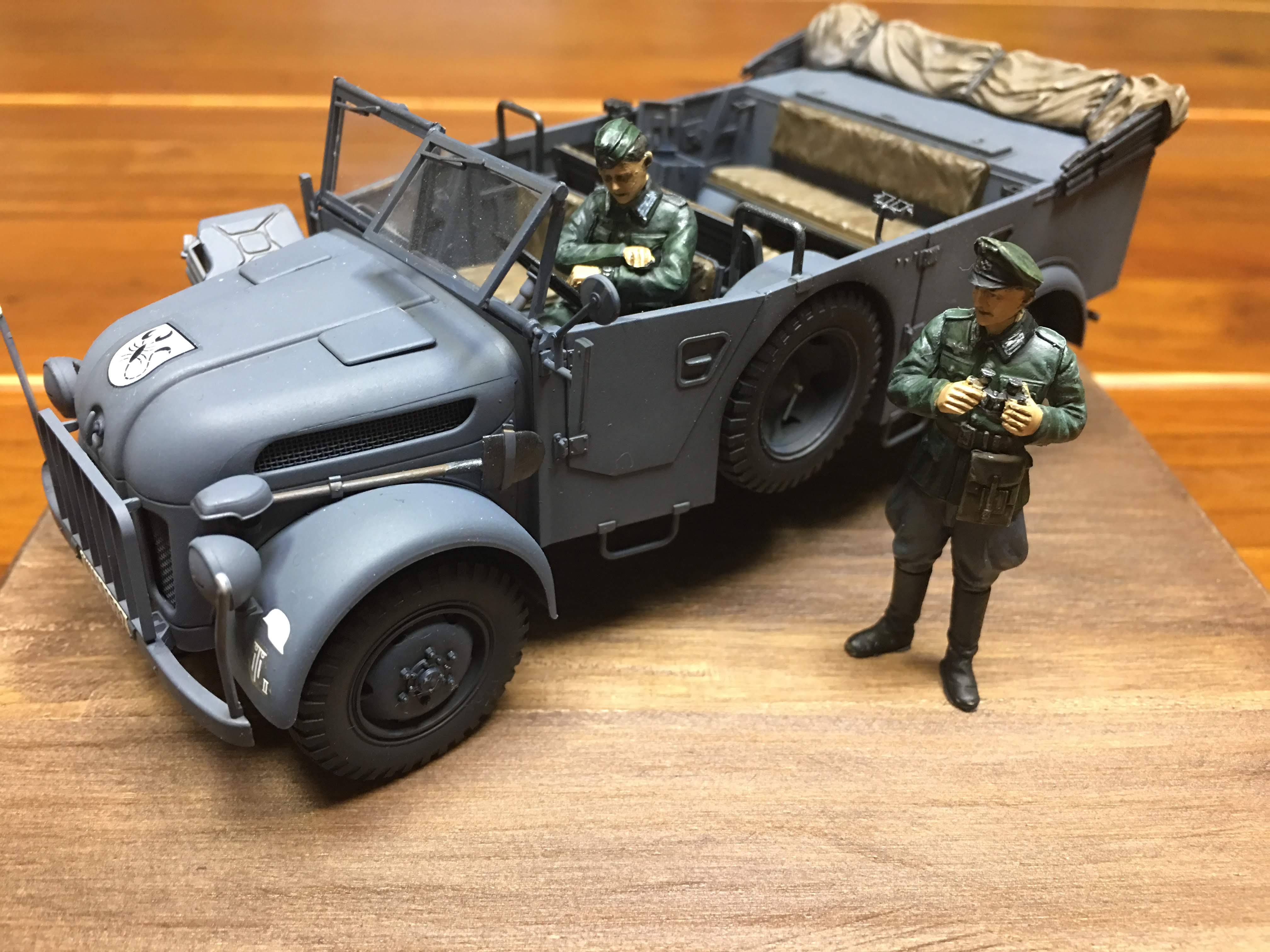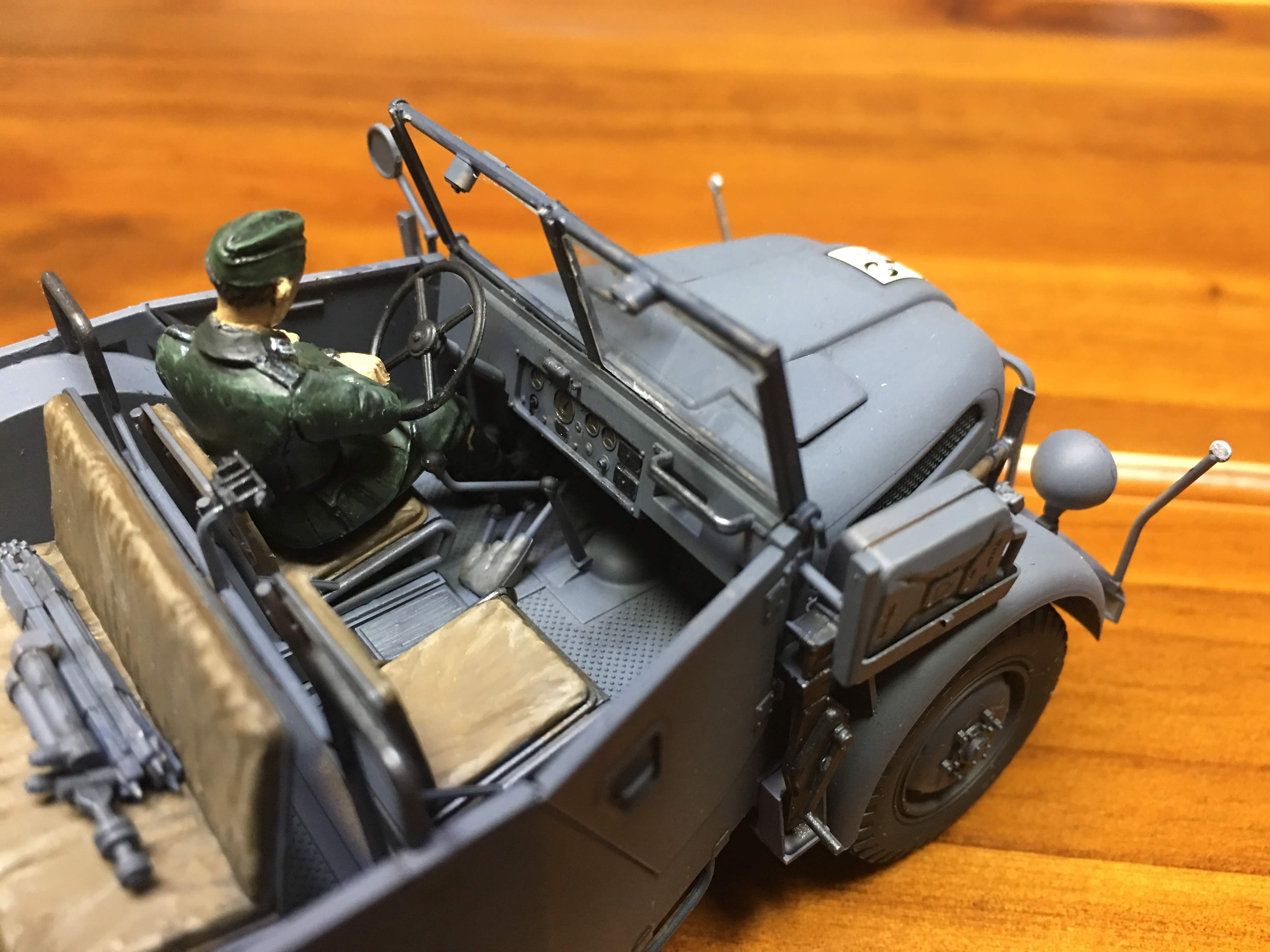 운전병은 언제 출발할지 시계를 보면서 뭔가 초초해하는 느낌의 포즈입니다. 장교는 밖에서 망원경으로 주위를 살피고 있는 포즈입니다. 새로운 금형으로 만들어져서인지 기존 독일군과 신체비율의 차이가 꽤 나는 편입니다.