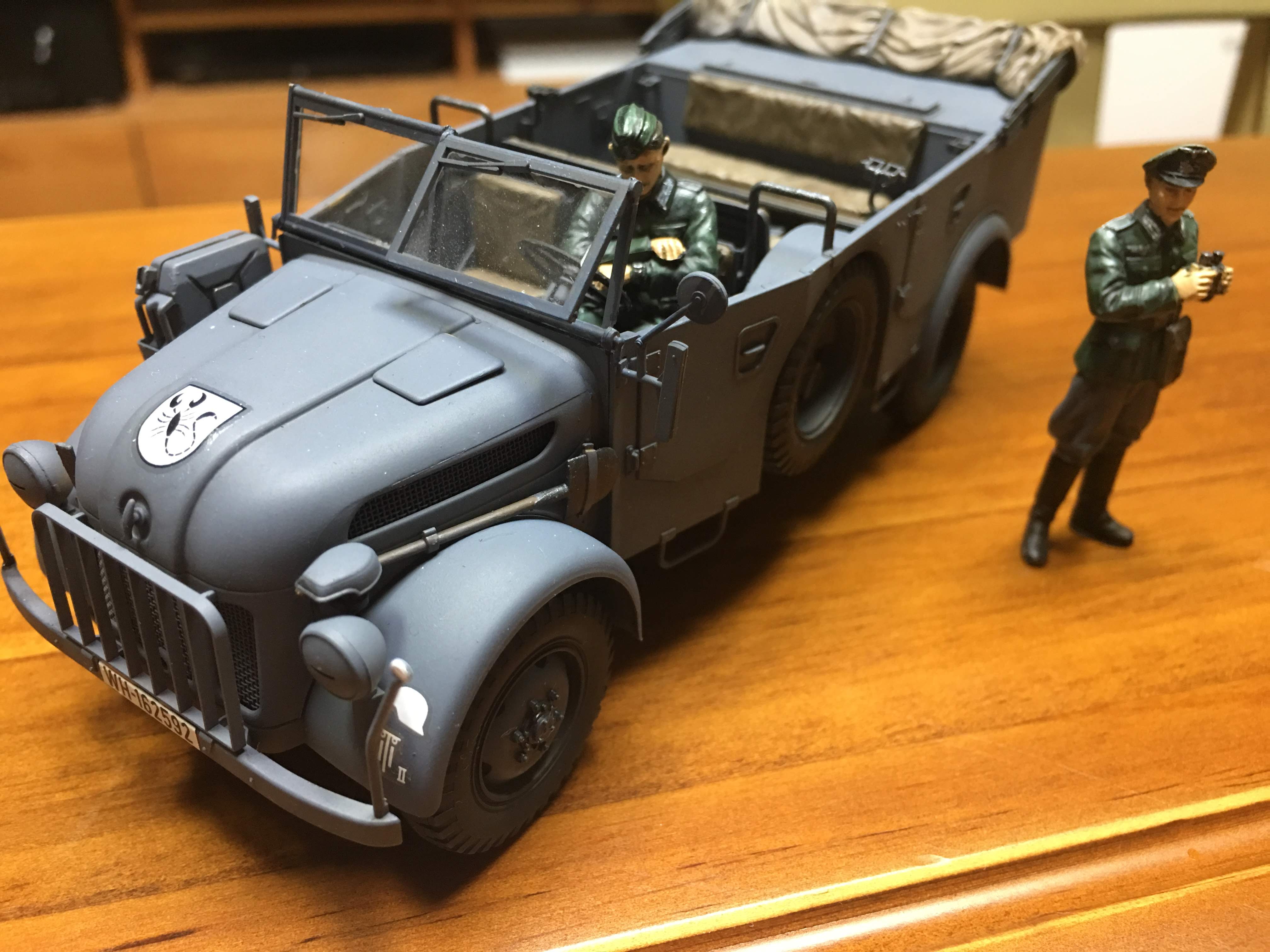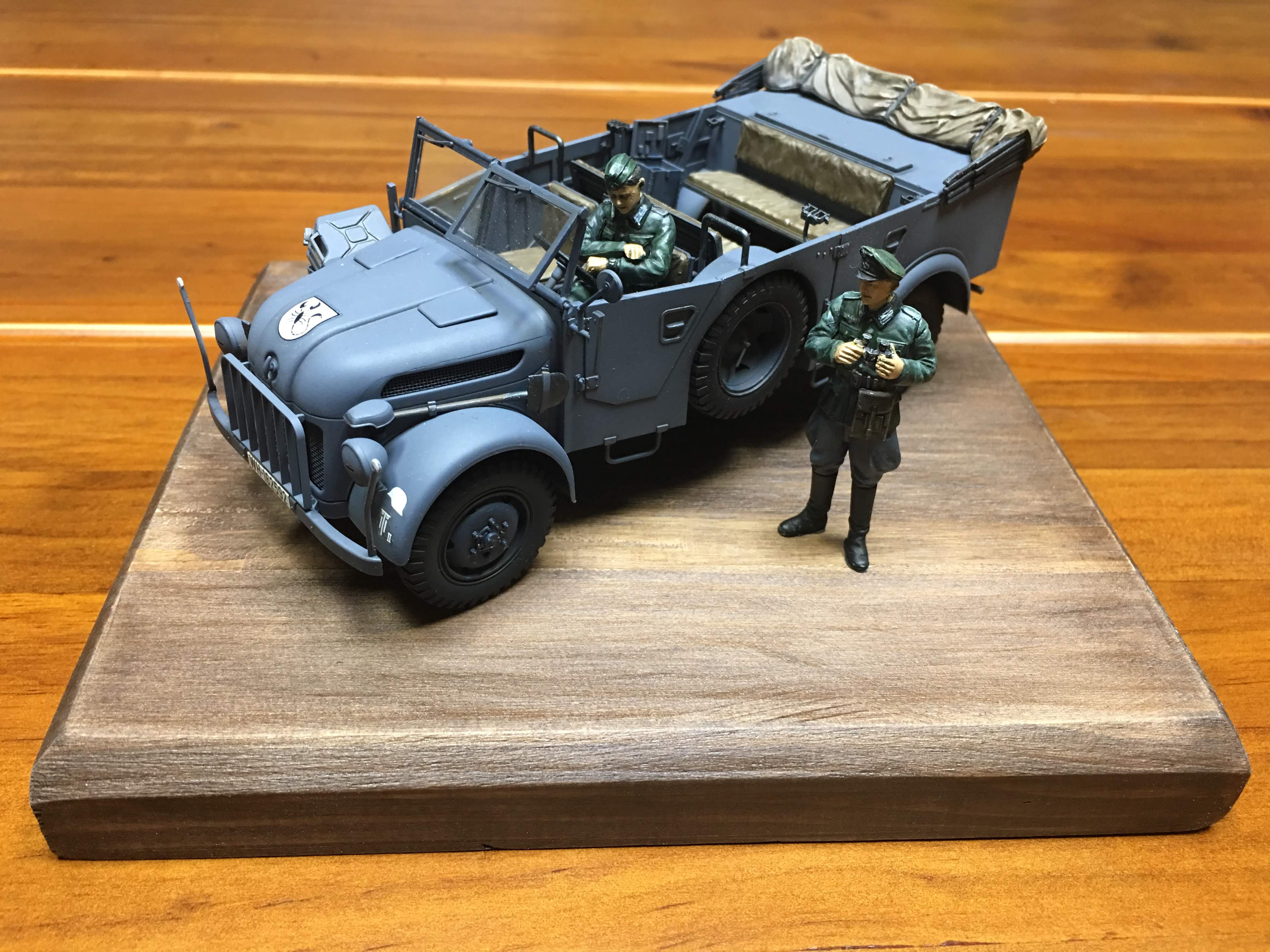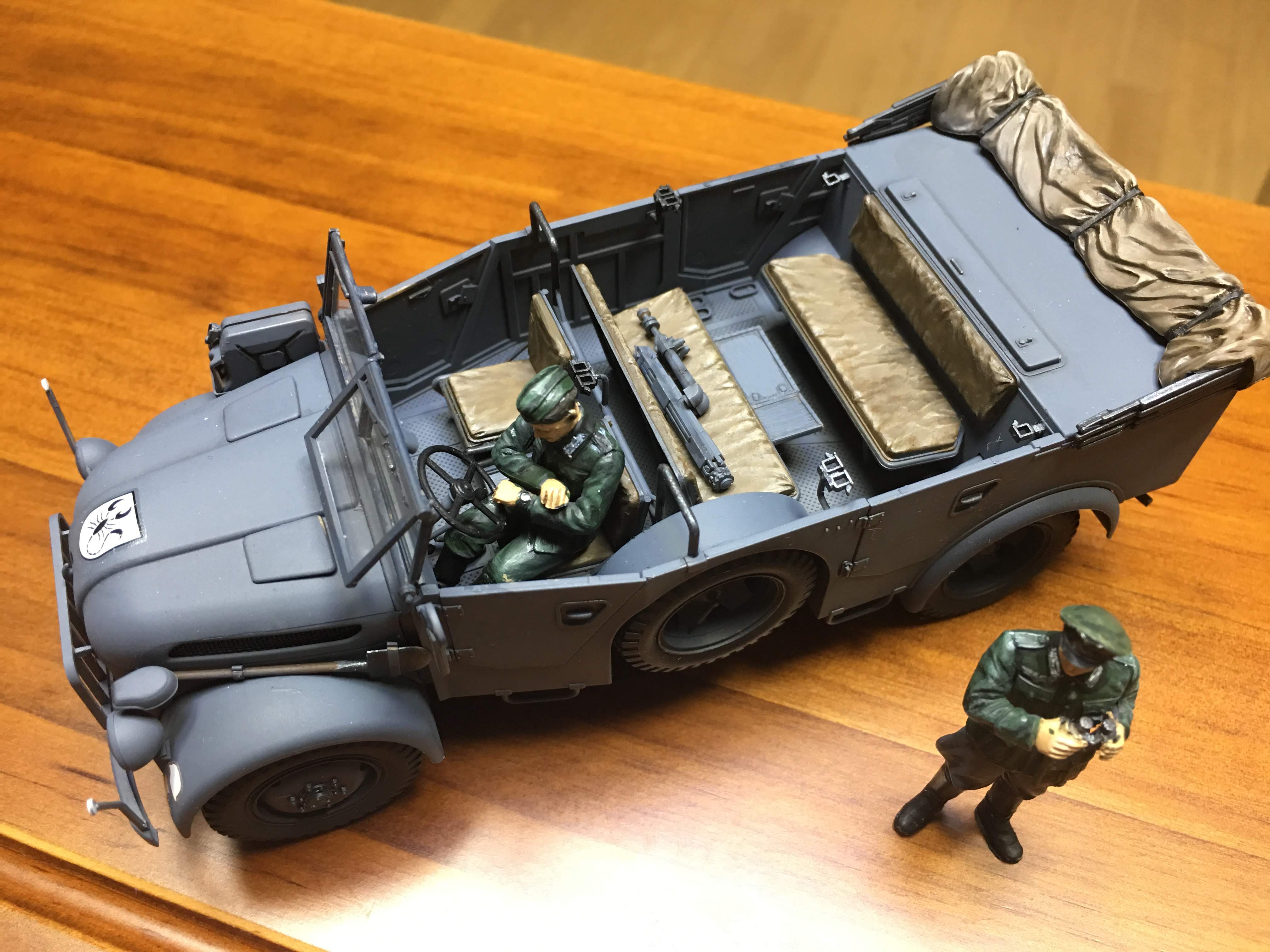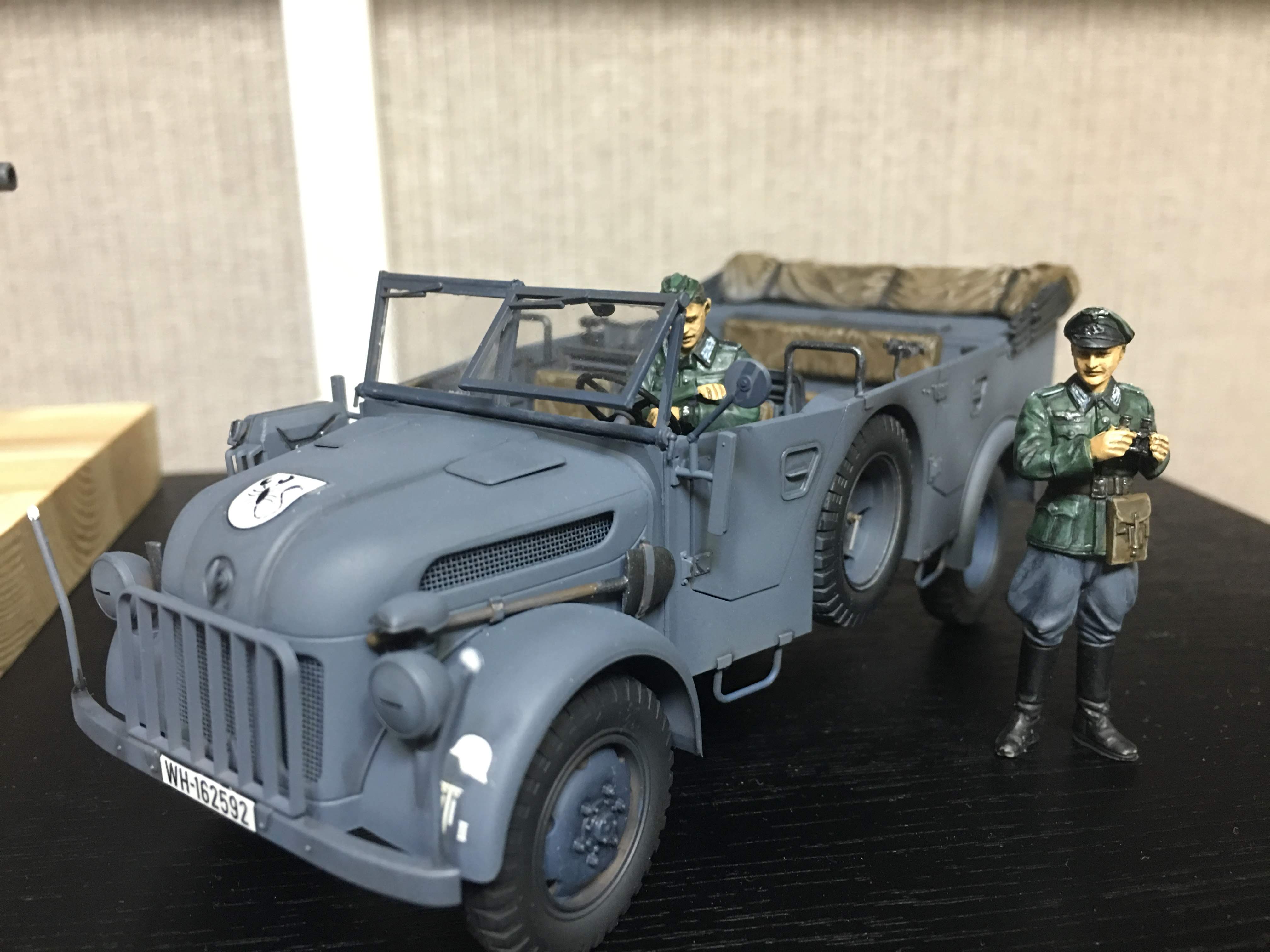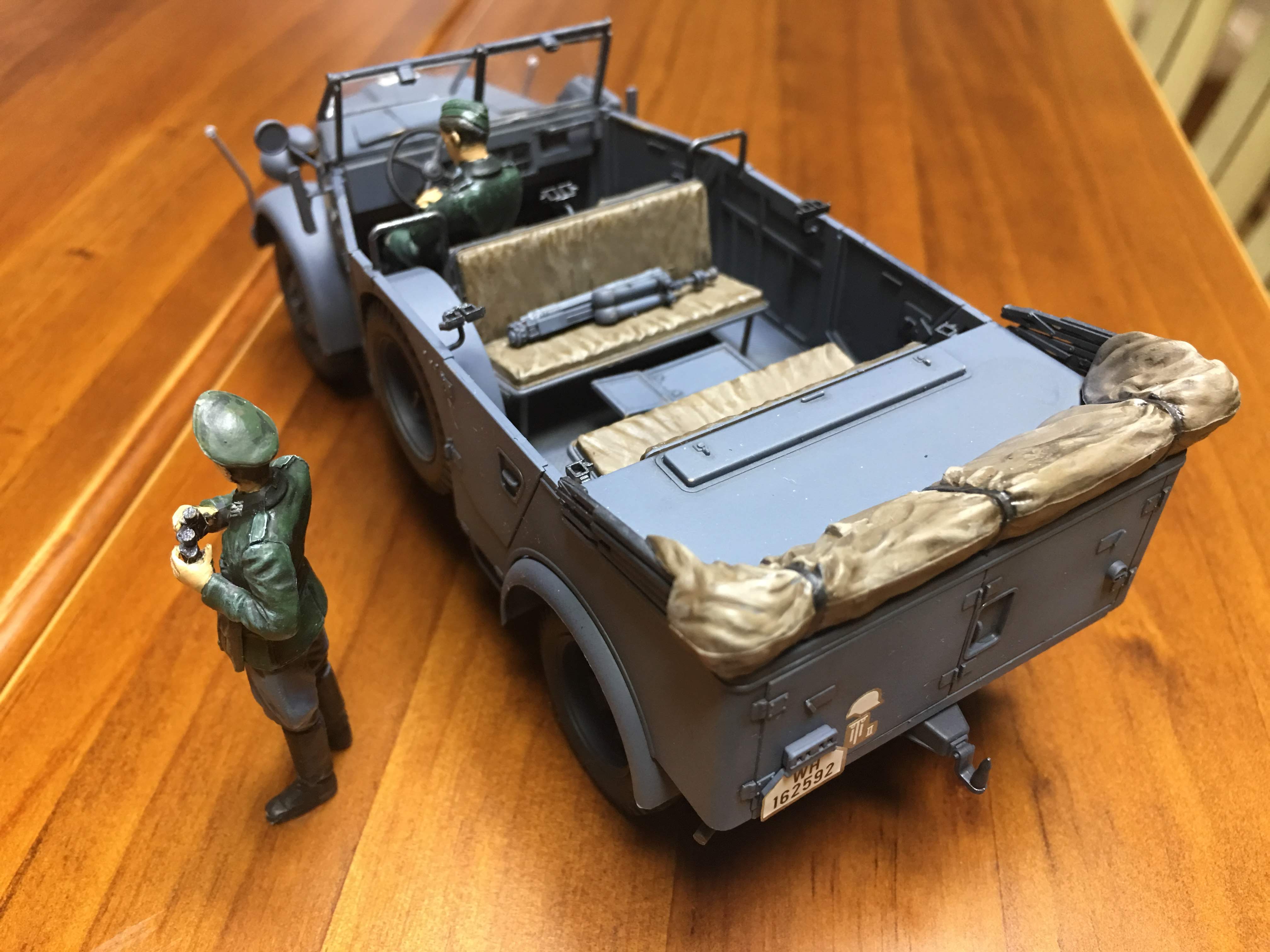 운전병은 언제 출발할지 시계를 보면서 뭔가 초초해하는 느낌의 포즈입니다. 장교는 밖에서 망원경으로 주위를 살피고 있는 포즈입니다. 새로운 금형으로 만들어져서인지 기존 독일군과 신체비율의 차이가 꽤 나는 편입니다.