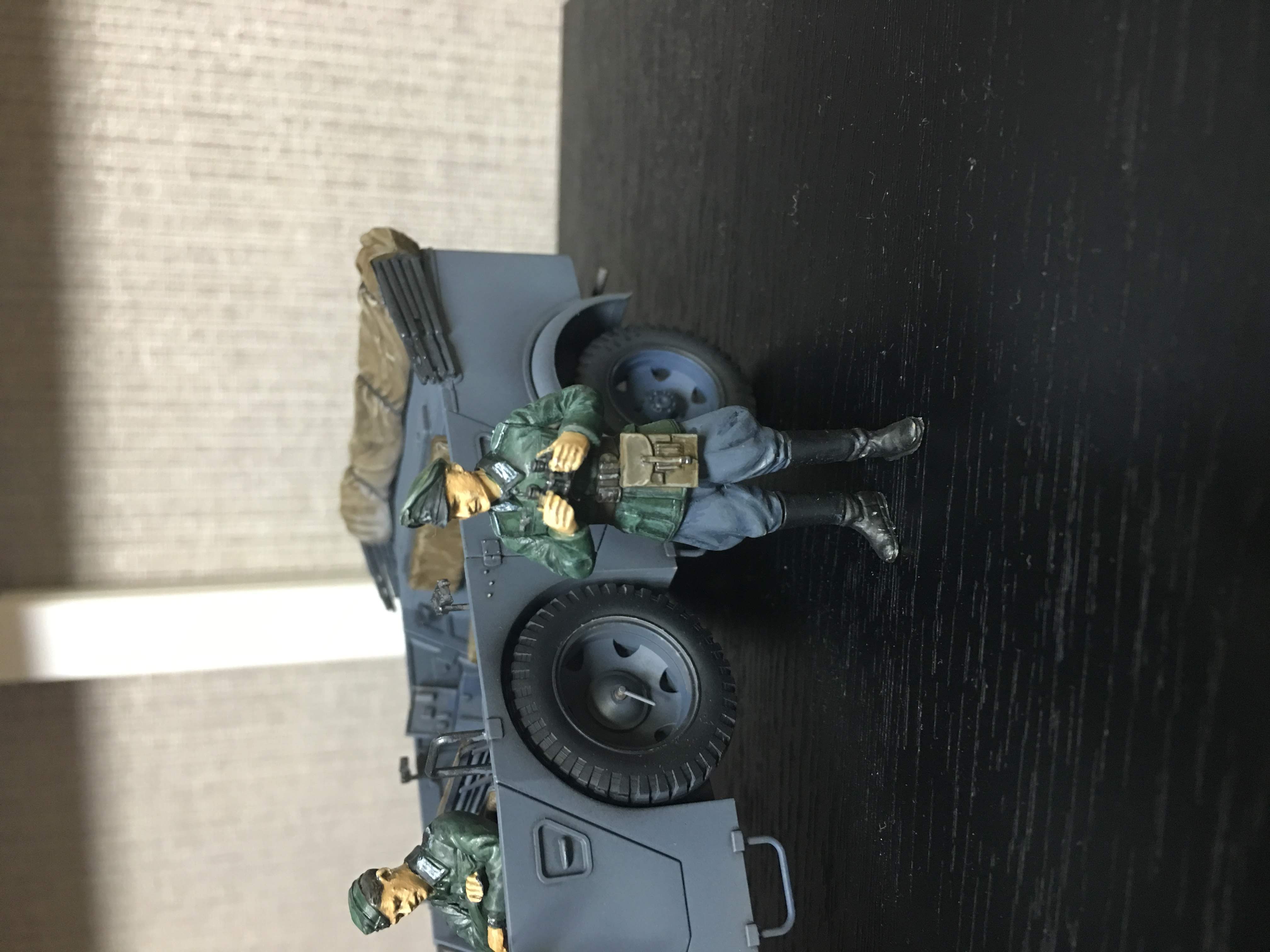 운전병은 언제 출발할지 시계를 보면서 뭔가 초초해하는 느낌의 포즈입니다. 장교는 밖에서 망원경으로 주위를 살피고 있는 포즈입니다. 새로운 금형으로 만들어져서인지 기존 독일군과 신체비율의 차이가 꽤 나는 편입니다.
