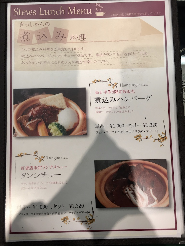 함박스테이크 런치메뉴는 모두 동일가격 1,320엔입니다.