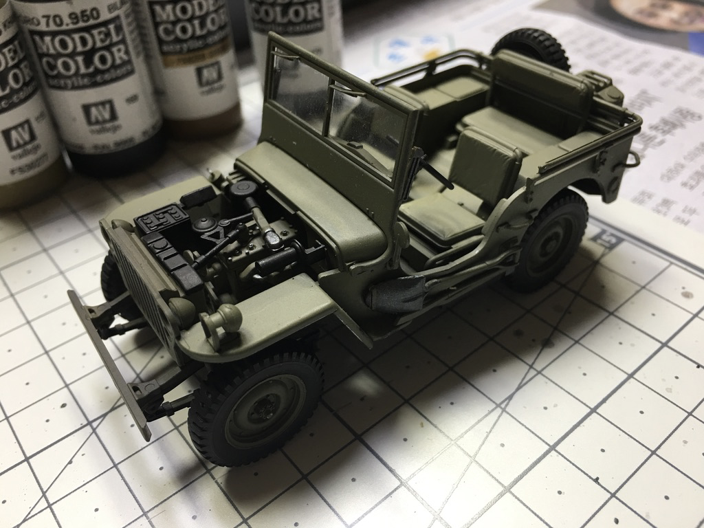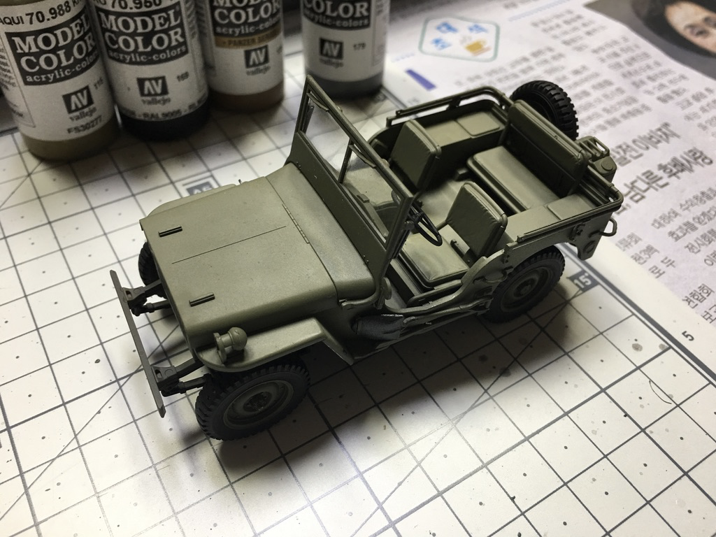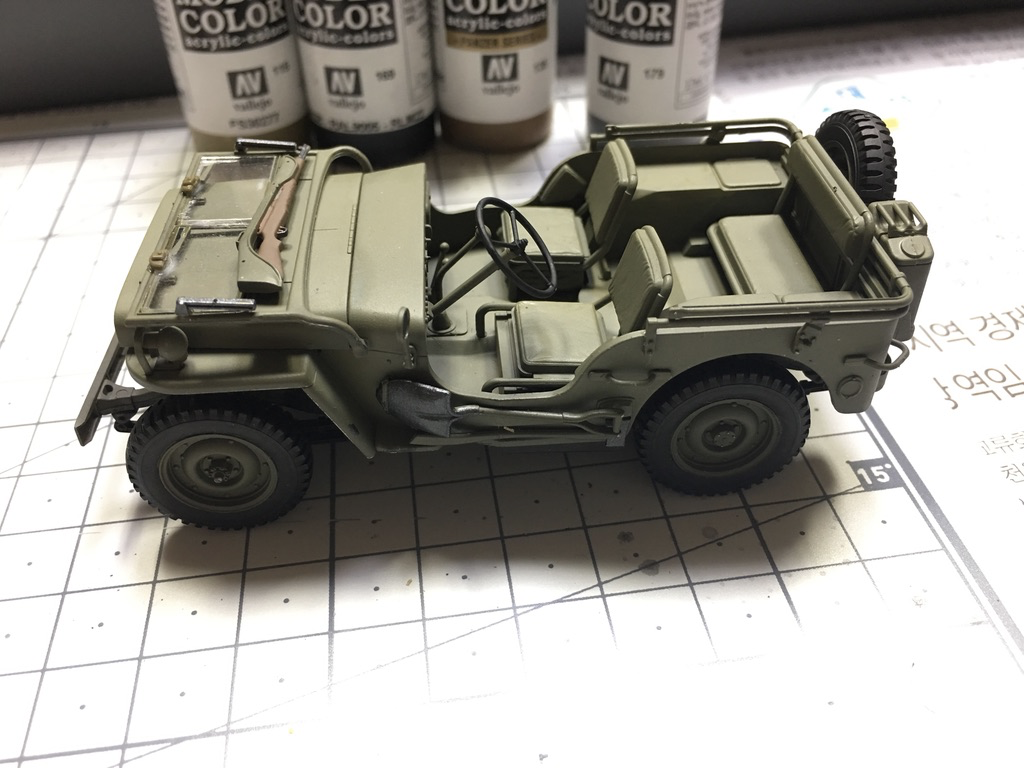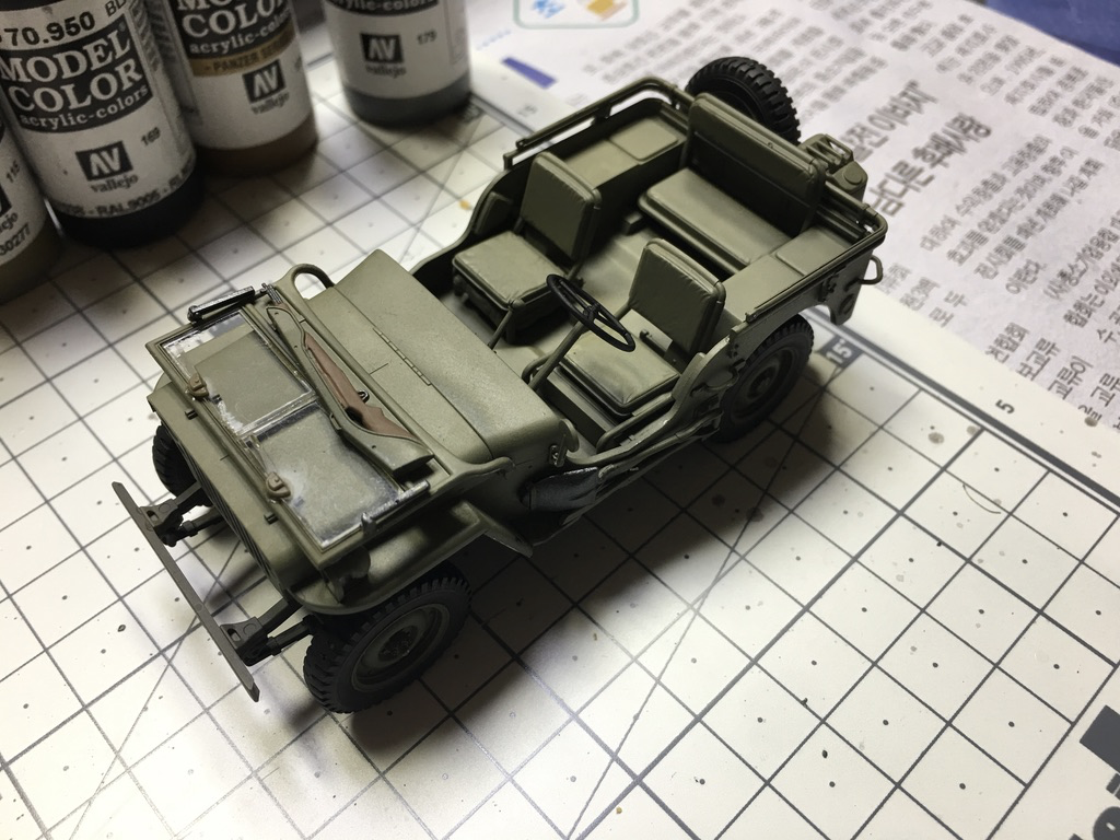 운전석과 뒷자석을 카키색으로 칠합니다. 칠하자 마자 아까전까지의 단조로운 느낌이 한 번에 사라지네요.