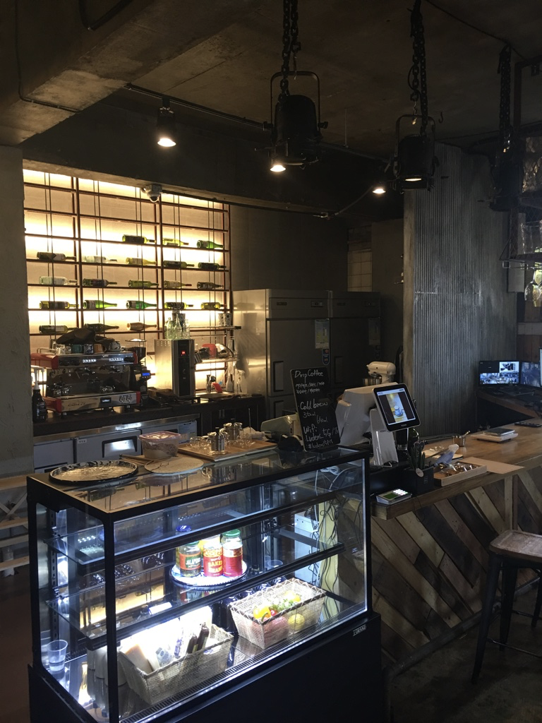 카페 주방은 넓은 공간으로 완전히 오픈되어 있고 뒤편으로 와인이 예쁘게 진열되어 있습니다. 주방이 생각보다 넓고 오픈되어 있어 카페가 아주 넓은 공간도 아니고 여러 가지 장비들이 많이 들어차 있음에도 전혀 답답한 느낌이 들지 않습니다.